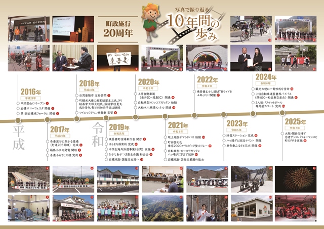 本リーフレットでは、直近10年間の主な出来事や取り組みをわかりやすくまとめ、町の発展の軌跡をご覧いただける内容となっています。