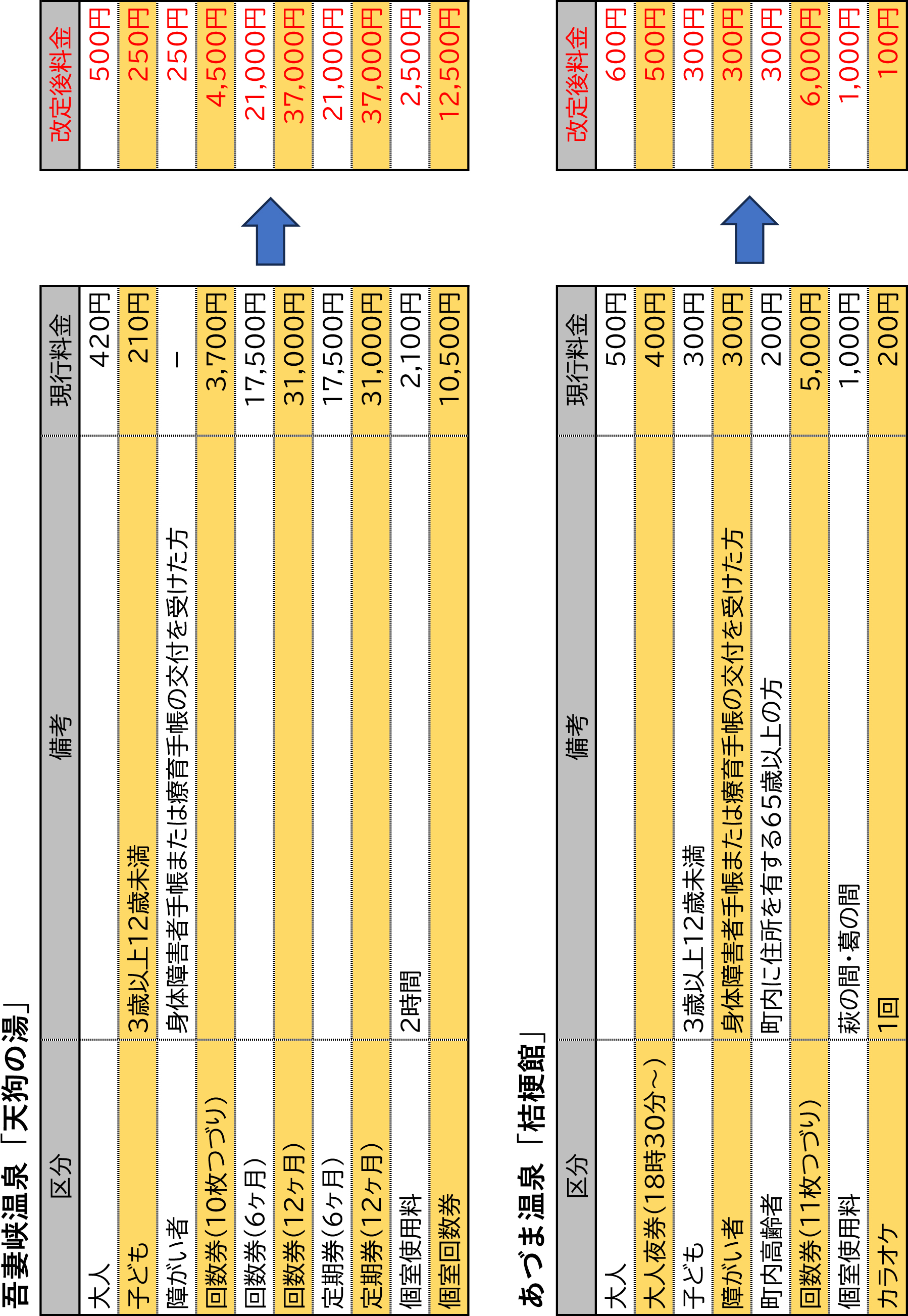 吾妻峡温泉「天狗の湯」・あづま温泉「桔梗館」の利用料金改定のお知らせ