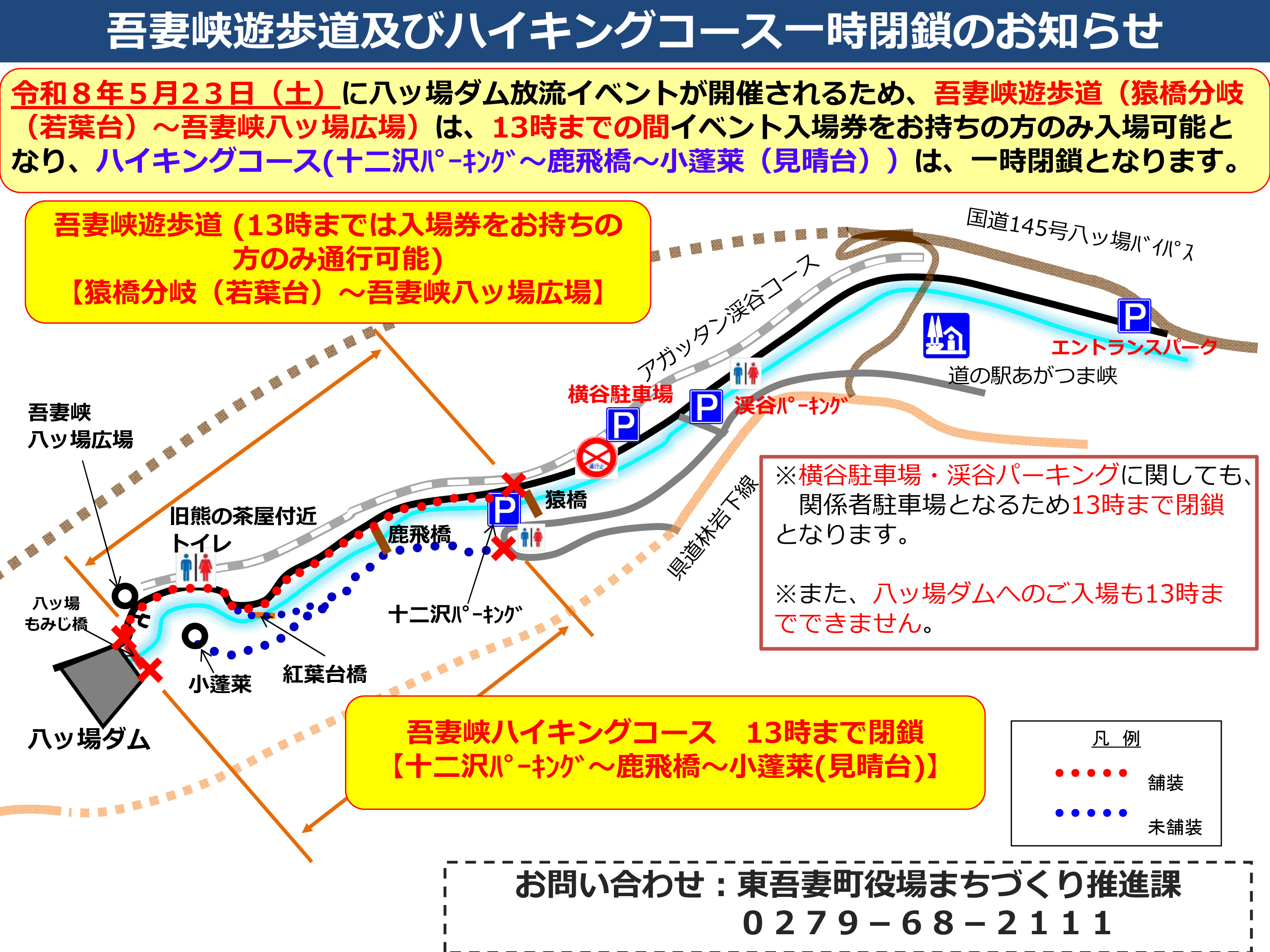 【令和8年5月23日(土)】 吾妻峡遊歩道及びハイキングコース一時閉鎖のお知らせ